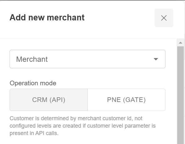 Then select one of the operation mode - CRM(API) or Payment Gateway.